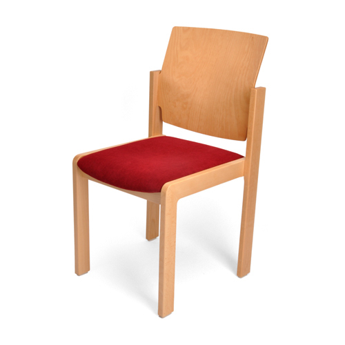 Stapelstuhl Mod. „Altona“ Stapelstuhl mit Flachstollen in Buche natur, 2x lackiert mit DD-Lack -Rücken Sperrholz Buche 11-lagig 10,5 mm Dreidimensional geformt (Ackerbloomknick), -Sitz Sperrholz Buche 7-lagig 9 mm an Zarge befestigt mittels M4 Gewindehülsen/-Schrauben durch Metallwinkel Sitz gepolstert Kunststoffbodengleiter