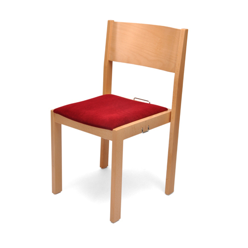 Stapelstuhl Mod. „Ancona“ Stapelstuhl mit Flachstollen in Buche natur, 2x lackiert mit DD-Lack -Rücken Sperrholz Buche 11-lagig 10,5 mm gerade Oberkante -Sitz Sperrholz Buche 7-lagig 9 mm an Zarge befestigt mittels M4 Gewindehülsen/-Schrauben durch Metallwinkel Sitz gepolstert Kunststoffbodengleiter