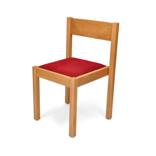 Kirchenstuhl Mod. Bergamo, stapelbar, mit Massivholzrücken Massivholzstuhl mit Quadratstollen Ausführung in Eiche natur, Rücken: Massivholzrücken gefräst Oberfläche: geölt, Sitz gepolstert