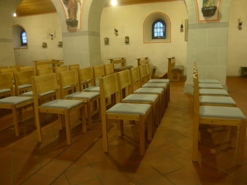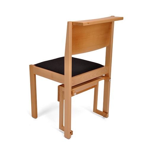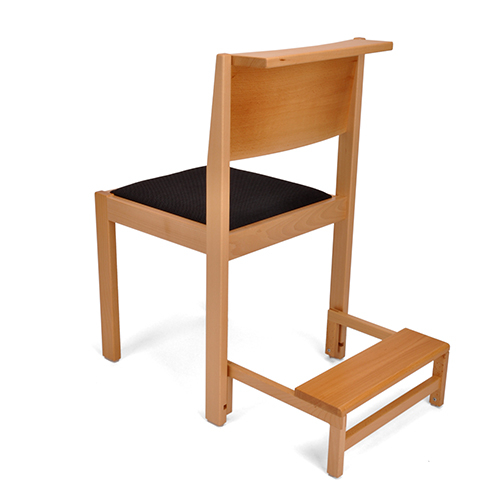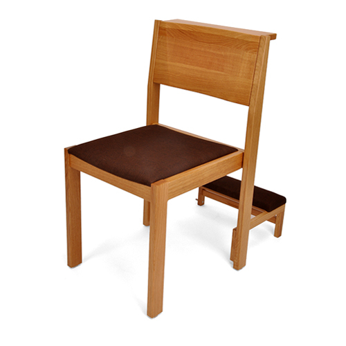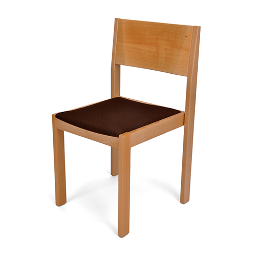 Kirchenstuhl Mod. „Genua“ Stapelstuhl aus Massivholz in Buche oder Eiche natur, Oberfläche mit DD-Lack oder geölt, Seitenzarge mit Doppelzapfen in Vorder- u. Hinterzarge verleimt, zusätzlich Knaggen Material: Hst/Vst: Buche/ Eiche massiv Rücken: Massivholz gerundet und gefräst Sitz gepolstert Polster eingelegt oder Knierolle