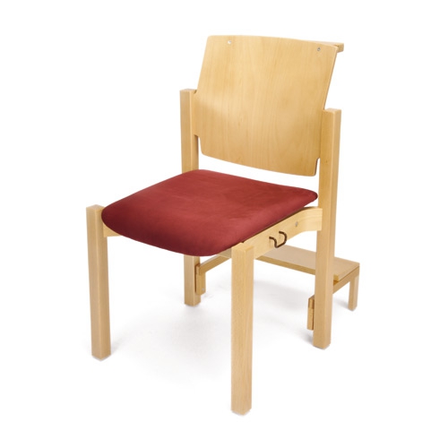 Stapelstuhl mit verwindungsfähigem Schichtholzrahmen in Buche natur lackiert – ursprünglich konstruiert für die Bibelschule Brake in Lemgo. Produktgruppe: Holzstuhl, Holzstühle, Stapelstuhl, Stapelstühle