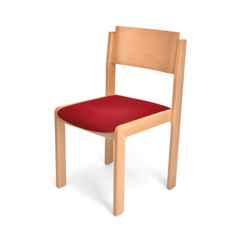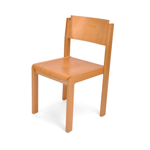 Stapelstuhl Mod. „Split“ Stapelstuhl mit Flachstollen in Buche natur, 2x lackiert mit DD-Lack -Rücken Sperrholz Buche 11-lagig 10,5 mm -Sitz Sperrholz Buche 7-lagig 9 mm an Zarge befestigt mittels M4 Gewindehülsen/-Schrauben durch Metallwinkel Sitz gepolstert Kunststoffbodengleiter