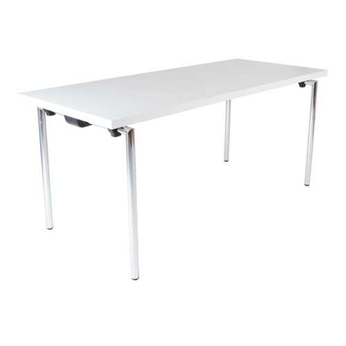 - Gestell: 4-Fuß-Rundrohr 35 mm, Füße auf Gehrung gearbeitet, Kunststoffbodengleiter mit Höhenausgleich, Füße verschieben sich beim Einklappen, Einhand-Klapptischbeschlag ohne Verstrebungen, nachstellbar, Gestell verchromt