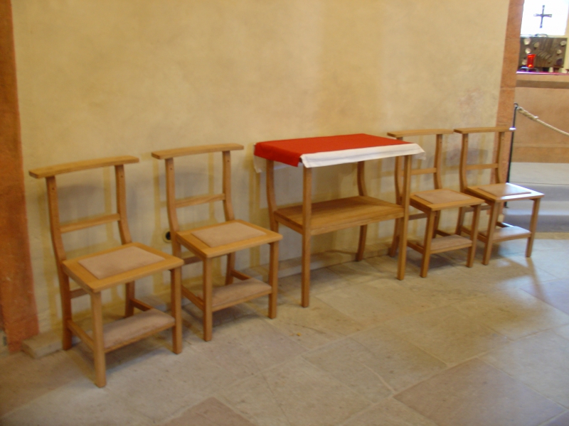 Im Frühjahr 2007 kamen die Architekten des Generalvikariats Fulda auf uns zu, weil sie deutschlandweit nach Fachleuten suchten, die Stühle für die Kirche St. Michael „nach alter Handwerkskunst“ anfertigen können. Die Anforderungen waren hoch: Die vorhandene alte Bestuhlung sollte originalgetreu nachgebildet werden, um den Charme der Kirche zu erhalten. Dabei waren die Stühle sehr anspruchsvoll zu fertigen, mit Zargen aus einem Stück gebogen und einer in den Stuhl integrierten Kniebank. Außerdem tagt in dieser Kirche die Deutsche Bischofskonferenz; daher war es für uns Ehrensache, ein handwerklich perfektes Ergebnis zu präsentieren. Zunächst war die Fertigung von Musterstühlen verlangt, die in mehreren Schritten angepasst und ausgearbeitet wurden. Erst dann wurde die Kleinserie beauftragt und produziert. Nachdem die Bestuhlung in der Kirche aufgestellt und unsere Mission abgeschlossen war, verriet uns der Auftraggeber: „Wir haben lange gesucht, einen Anbieter zu finden, der diese Stühle in Kleinserie so fertigen konnte.“