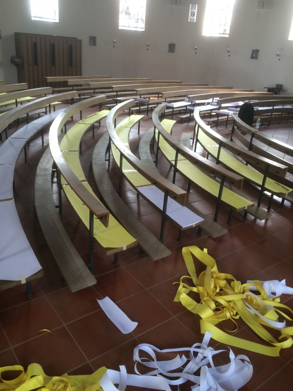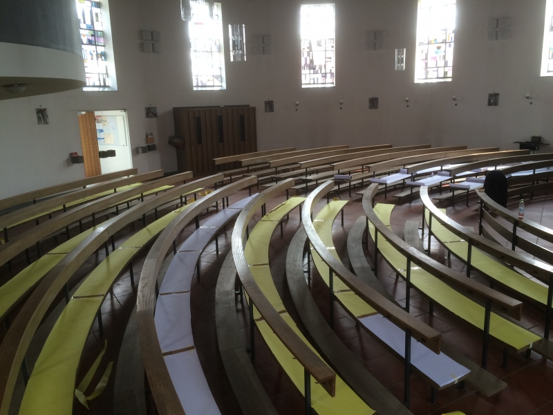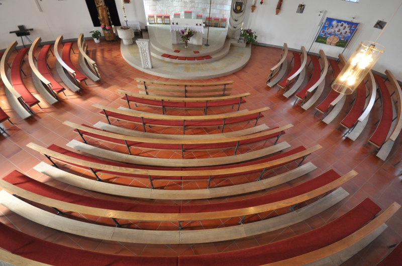 Die Kath. Filialkirche „Mariä Unbefleckte Empfängnis“ in Neudorf bei Grafenau Im November 2015 bat uns das Bauamt vom bischöflichen Ordinariat Passau um die Begutachtung der Kirchenbänke und deren Polster der Kirche in Neudorf. Bereits bei der ersten Besichtigung war uns allen klar: „Dies ist wieder einmal eine Herausforderung“ Nach der Angebotsabgabe erhielten wir relativ kurzfristig den Auftrag alle Kirchenbänke neu zu Polstern. Da alle Polster nicht nur unterschiedliche Längen sondern auch verschiedene Radien aufwiesen, mussten wir für jede einzelne Kirchenbank eine Schablone in 1:1 anfertigen. Ca. 200 lfm. Papier und 13 Arbeitsstunden waren dazu nötig um die bis zu ca. 12,60 m langen Schablonen zu fertigen. Im Mai 2016 war es soweit. Wir durften die Polster liefern und auflegen. Wir waren schon ein wenig gespannt ob auch alles passen würde, schließlich ist eine Schablone schnell mal verkehrt angezeichnet. Alle Polster saßen perfekt. Nach nur 1,5 Stunden erstrahlte die Kirche in neuem Glanz. Herzlichen Dank für diesen Auftrag.