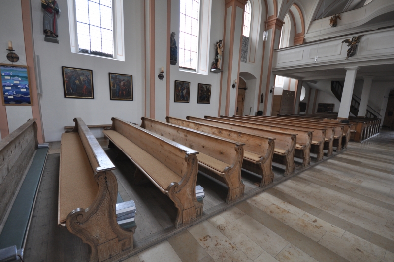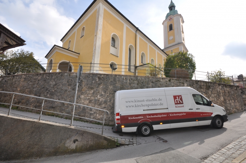 Es ist eine große Pfarrkirche, für die Oliver Kinast neue Kirchenbankpolster anfertigen durfte. Der einschiffige Bau mit einem ausgesprochen großen Chor sowie einem sechsjochigen Langhaus war dabei ein arbeitsintensiver Auftrag. Es galt, viele Meter Polster herzustellen. Und dies in der gewohnten Qualität, die Oliver Kinast und sein Team schon seit vielen Jahren liefert. Kinast Kirchenstühle denkt gerne an diesen Auftrag und an den 1713 errichteten Turm, der an der Südseite dieser schönen Kirche aufragt. Die Firma Kinast bedankt sich für das Vertrauen und freut sich auf den nächsten Auftrag der Gemeinde in Miesbach.