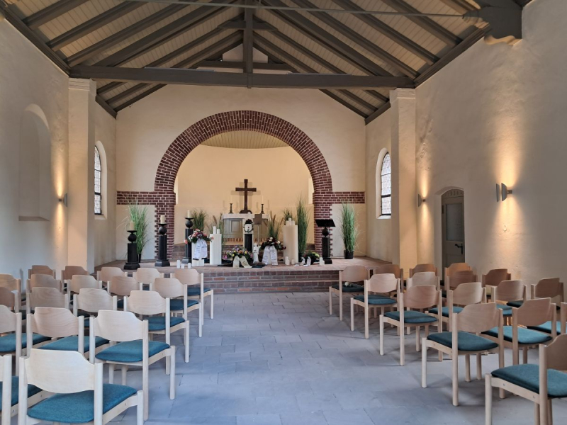 Für die Friedhofskapelle in Salzwedel durften wir die vorhandenen Kirchenbänke (60 Sitzplätze) durch unser Modell „Monaco“ ersetzen. Mit den eleganten, einzeln stehenden Kirchenstühlen haben wir den sakralen Charakter des Raumes hervorgehoben und zugleich ein deutliches Plus an Flexibilität geschaffen. Die neue Möblierung ermöglicht variabel gestaltbare Bestuhlungsarrangements und unterstreicht gleichzeitig die feierliche Atmosphäre der Kapelle.